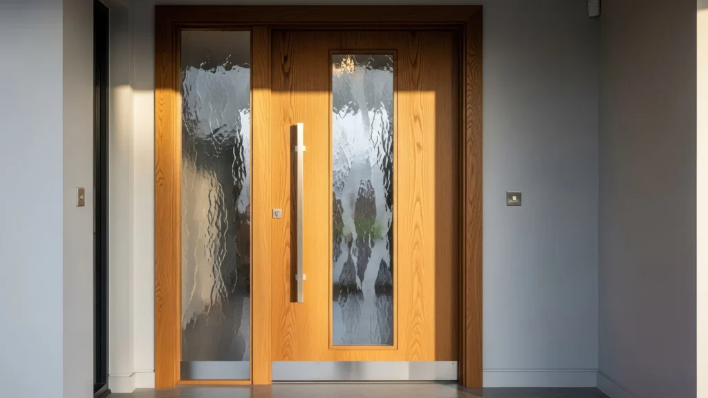 - Textured or Patterned Glass: From glue chip to reeded styles, textured glass adds a vintage or artistic flair to the entryway.